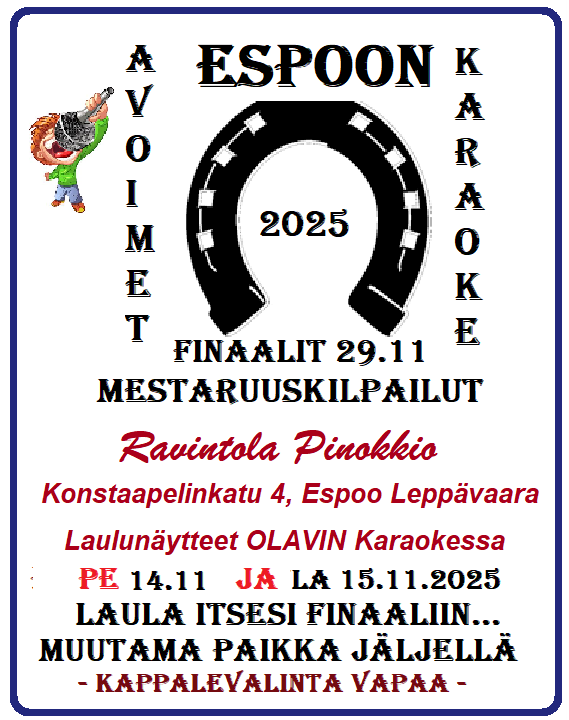 Alla linkkipalkkeja Espoo Karaoke finaalissa valittavista kappaleista - klikkaa linkkiä